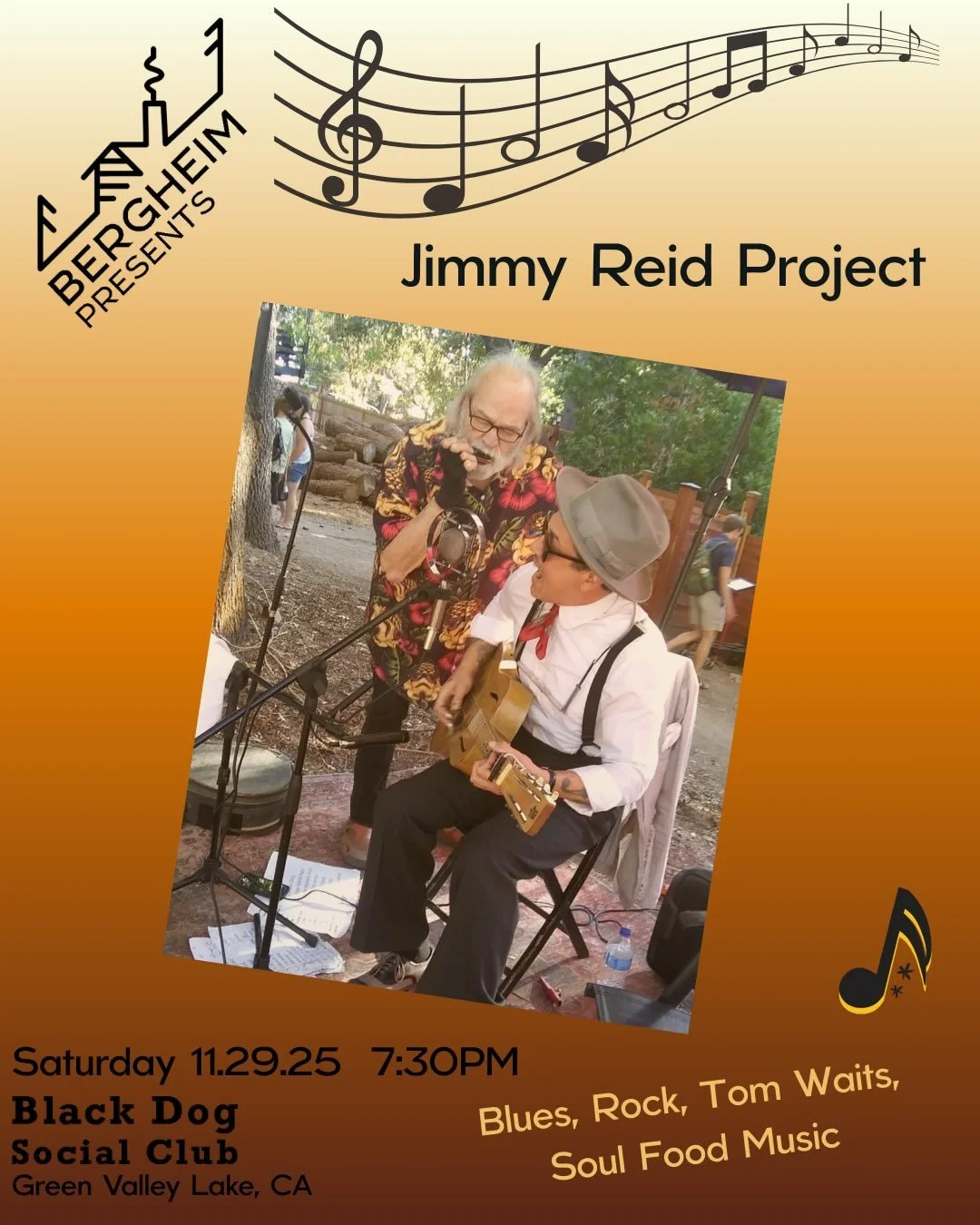 7:30pm Jimmy Reid and Friends (Blues, Rock, Tom Waits, Soul Food Music)