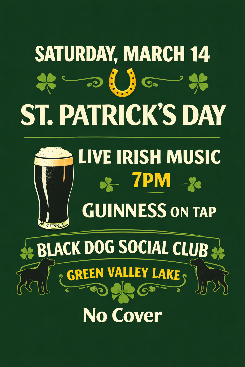 A full day of Irish celebration - from 9am Matcha lattes through Guinness at noon to a night of great live music and joy. Sláinte!