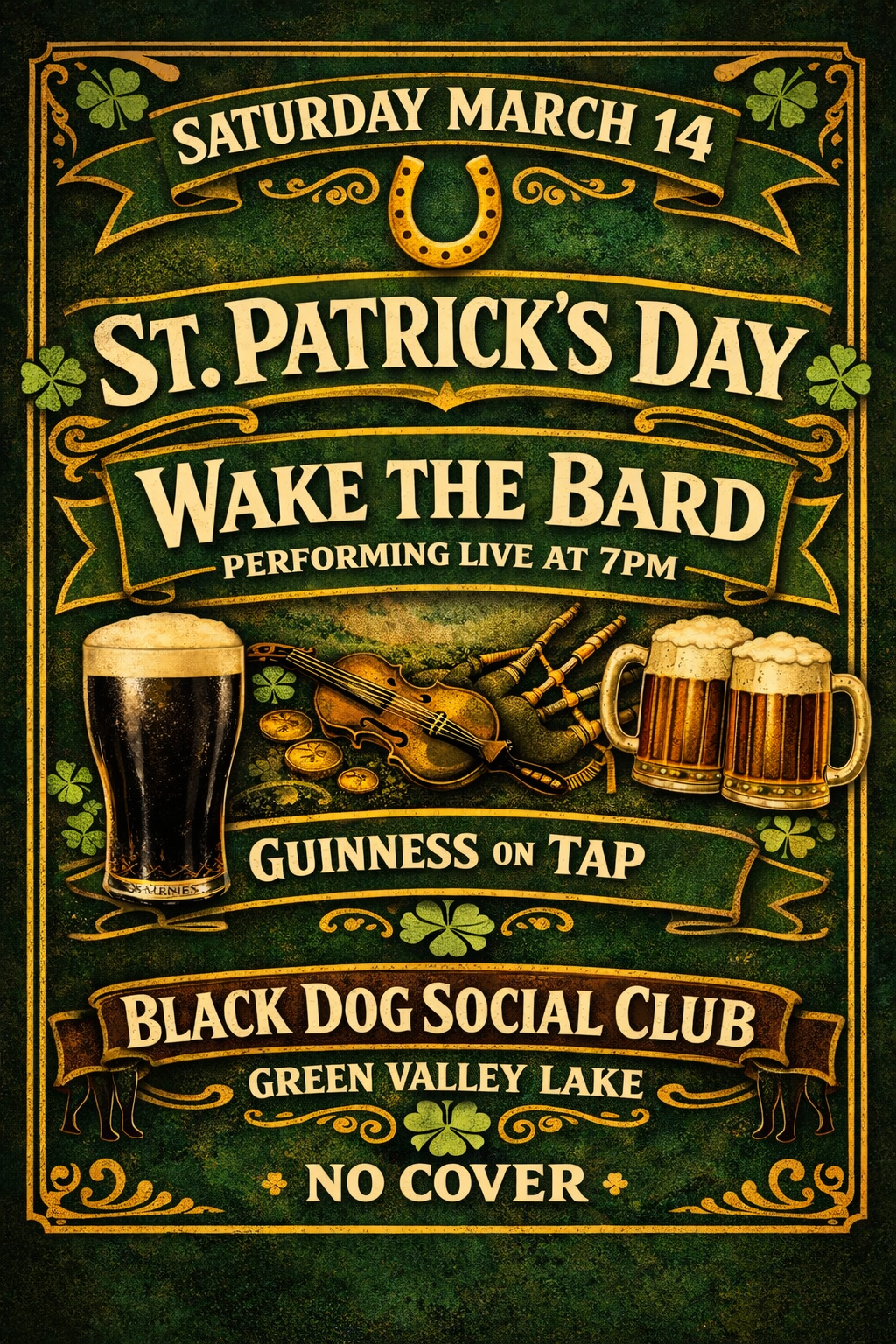 7pm Wake the Bard (Irish and St. Paddy’s Tunes)